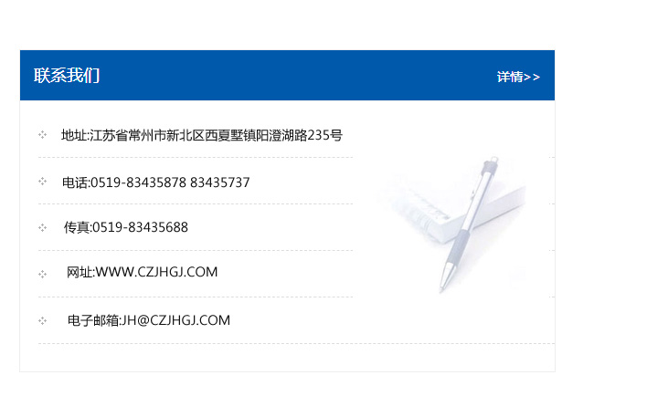 傳真:0519-83435688    郵編:213135    網(wǎng)址:WWW.czjhgj_com.csgryy.com    電子郵箱:JH@czjhgj_com.csgryy.com